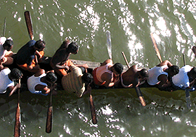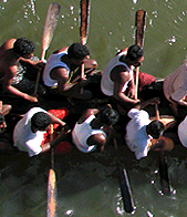 1. Chundans were the war ship during 1600-1700 which ensured the victory of Chempakasserri over the ruler of Kayamkulam. more..... 2, Iruttukutty also known as Vadakkan Oddy were used by the pirates in the lake because they were faster and they do not make much noice in the water. 3, Churulans were pushed through the water with the help of poles, instead of oars. these were used by rich aristocrates for travel. Now this catagory race is restricted for women. 4, Veppu also known as Parunth Vallan (Kite-tail). Their purpose was to accompany the Chundans while they venture for a battle with provisions for the soldiers. 5, Company boats have it's nose like that of Churulan and it's stern like Chundan, they are also called Thekkan Oddy. Now this catagory race is also restricted for women. 6, Palliyodams have huge sterns than Chundan. Unlike the Chundan, the nose of the Palliyodams are higher which helps the manoverablity much faster. |
